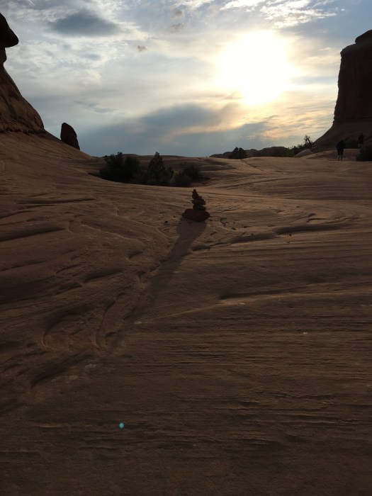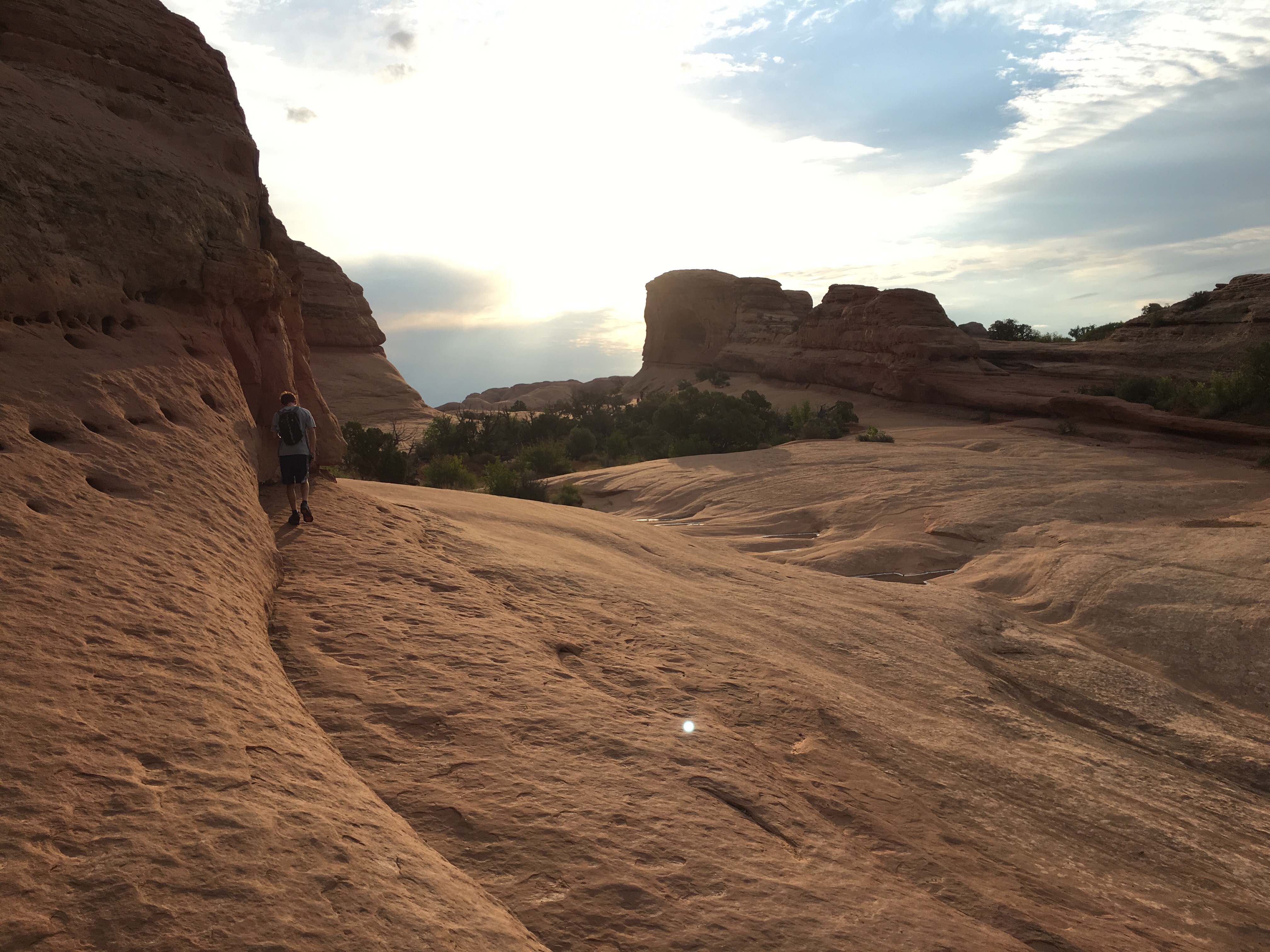 20170805_082201Well, Peaser had up at 5:30 this morning. Mind you, we didn’t get to the campsite last night(I mean this morning) until 1:00a.m.   We really wanted to see the sunrise but missed it. It was a 3 mile round trip hike to get to the arch. Not gonna lie…. the kids had to stop and wait a few times for me. Then a 2 year old passed me. That’s when I put my big girl pants on,pushed that toddler aside and climbed that cliff. It was worth it!!  It is so beautiful, it took my breath away.  Being able to share this experience with my family,  even though I was the butt of a few of their jokes is amazing. Oh yeah Kier, it was so funny when you pretended to kick me off the edge of the cliff 🤕
