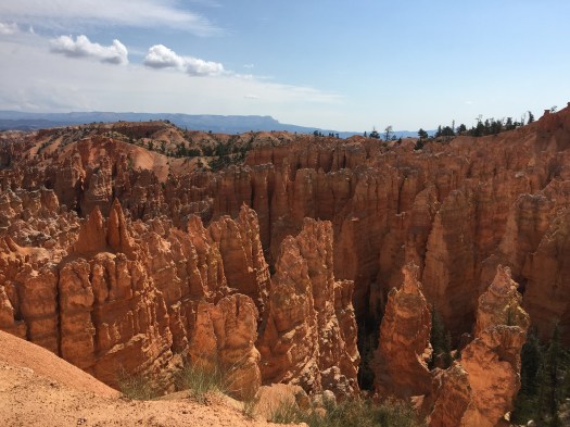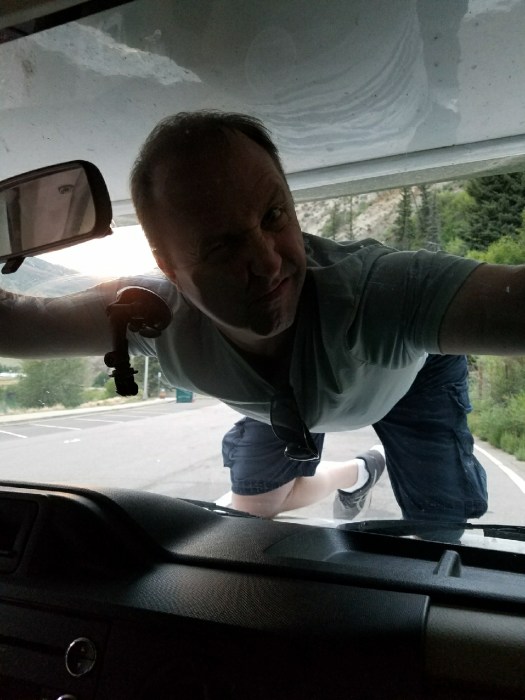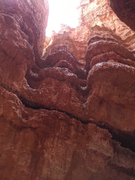20170806_140845Today started our pretty good. We got to Bryce canyon( we ran into a friend from Rochester). Matt and I decided to take the shuttle to Bryce point and do a nice little hike (1.3 miles) to inspiration point with the kiddos.   Well…..Kiersten said it would be so nice to go down in the canyon. Of course daddy agreed with his princess.  The thing is, if you hike DOWN into the canyon you have to hike UP to get out of the canyon. Trying to be a trooper , I followed my husband and our children of the corn( that is their new name because I think they are trying to kill me🤔)  We did a couple of trails and I said ,”can we find the easiest trail up?” Matt and Kiersten said “yes”. I swear I saw them look at each other and snicker. What the heck did I ever do to those two?   Oh yeah, before I forget…..THERE IS NO EASY WAY UP FROM THE CANYON!!!   Anyways, almost to the top and we have lightening bolts and hail. The children of the corn ran up to the top to safety and Matt waited for me.(I guess he realizes that the kids will eventually move out and he will be stuck with me). So,  we finally made it out of the canyon and we were waiting with a hundred othere people for a shuttle to take us to our vehicles. The bus gets there, we try to huddle close so we can all get on together. I stood behind the kids to make sure they got on. The bus driver started closing the door as I was pushing Kiersy  in and my hand got stuck AND he started driving away.  A guy next to me grabbed my hand out as I looked up to see my family drive away. I grabbed the next bus 10 freezing cold minutes later and when I was delivered to my stop I was greeted and being videotaped by my family .   All I have to say to my family is…sleep with one eye open😘     Next stop…Zion national park.