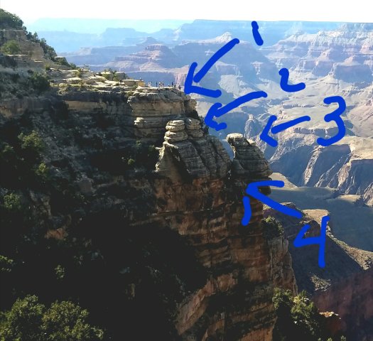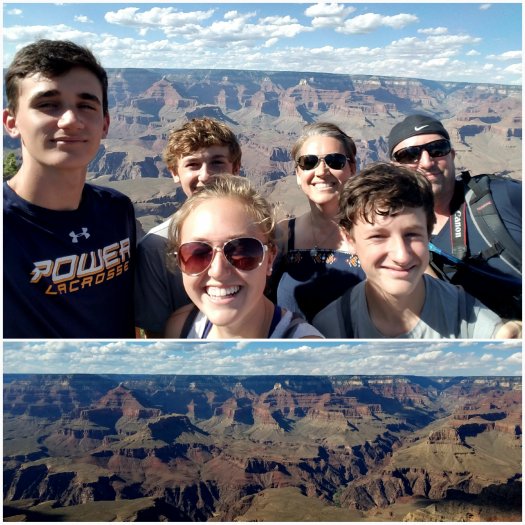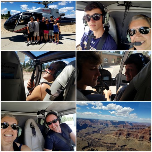 Well, we started our day with a helicopter ride over the grand canyon.  WOW!!! It was amazing. As we were flying to get to the canyon, we flew over some untouched land. The pilot said some people hike in there and will camp all summer. Matt later asked if I would want to do that for maybe a week not a whole summer.  Uh no, I kinda like a bed, shower and smelling nice but you go ahead🌲🌲⛺After the helicopter we had a great  lunch at a little Mexican restaurant in town. We were going to do a little hiking even though it was 2:00 and 87 degrees  (hmmmm, apparently we did not learn our lesson from yesterday 🌡🔥)  We decided to just walk along the walkway it was only .7 miles. As we were stopped taking our selfies,  the kids noticed a guy and his budfy over to the right of us jumping from one little cliff to another. What do you think happened to the idiots? Yup,one of them tumbled down from one of the cliffs 🤕 and the other was stuck on another cliff. I posted a picture…From the far left is the trail we were on, the guy and his friend went to point #1,down to 2 (which is where the one guy was stuck. The idiot jumped from 2 to 3 then fell to 4 (you can see him in the picture)It was one of the most terrifying things we have ever seen. They had to call in the rangers to rescue him.While he is waiting to be rescued, I hope he is thanking God he did not keep tumbling down. We are hoping he goes right to jail for putting those park rangers lives in danger having to save him. Besides that excitement,  we loved the view in the grand canyon.  On our way to Page,Arizona…